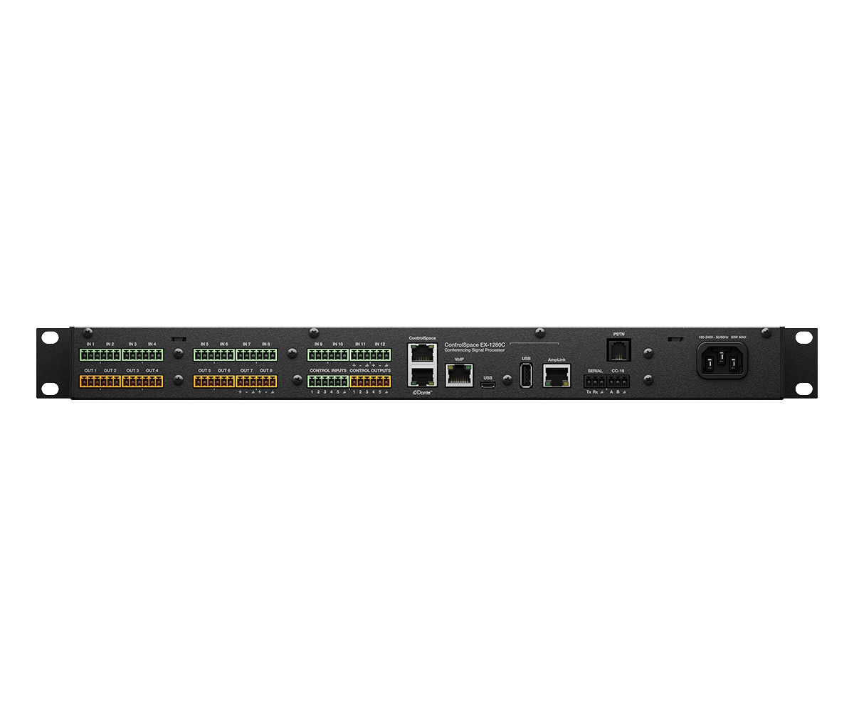 ● 12 個聲學(xué)回聲消除器 (AEC) 路由至模擬和 Dante? 輸入,多個參考信號通道能夠讓一個 EX-1280C 處理器支持多個房間,或多個處理器共享 AEC。